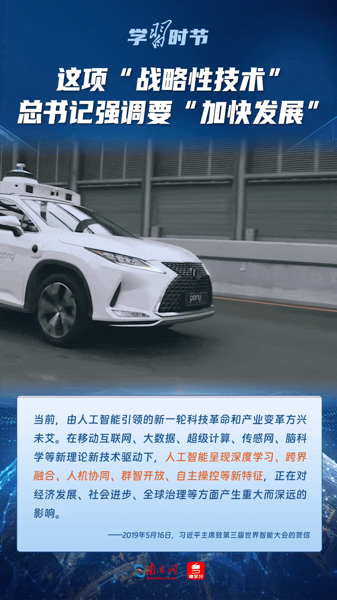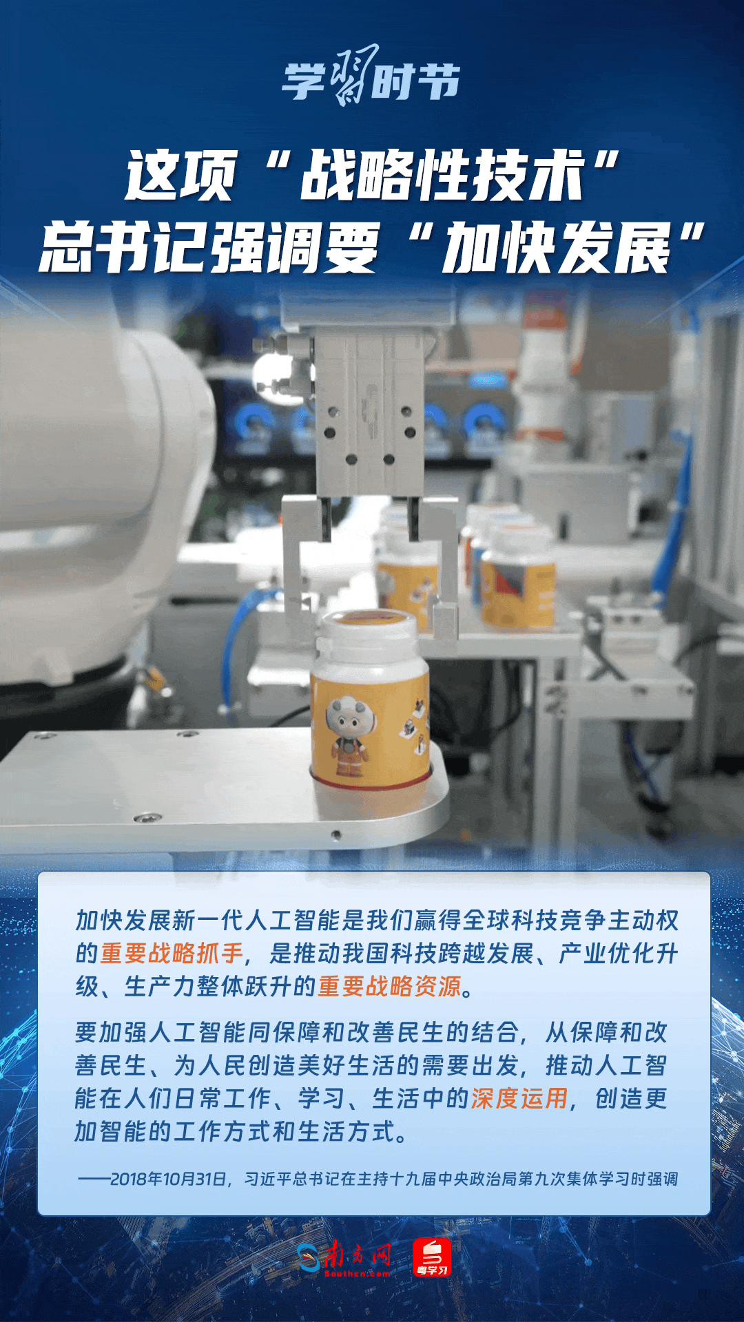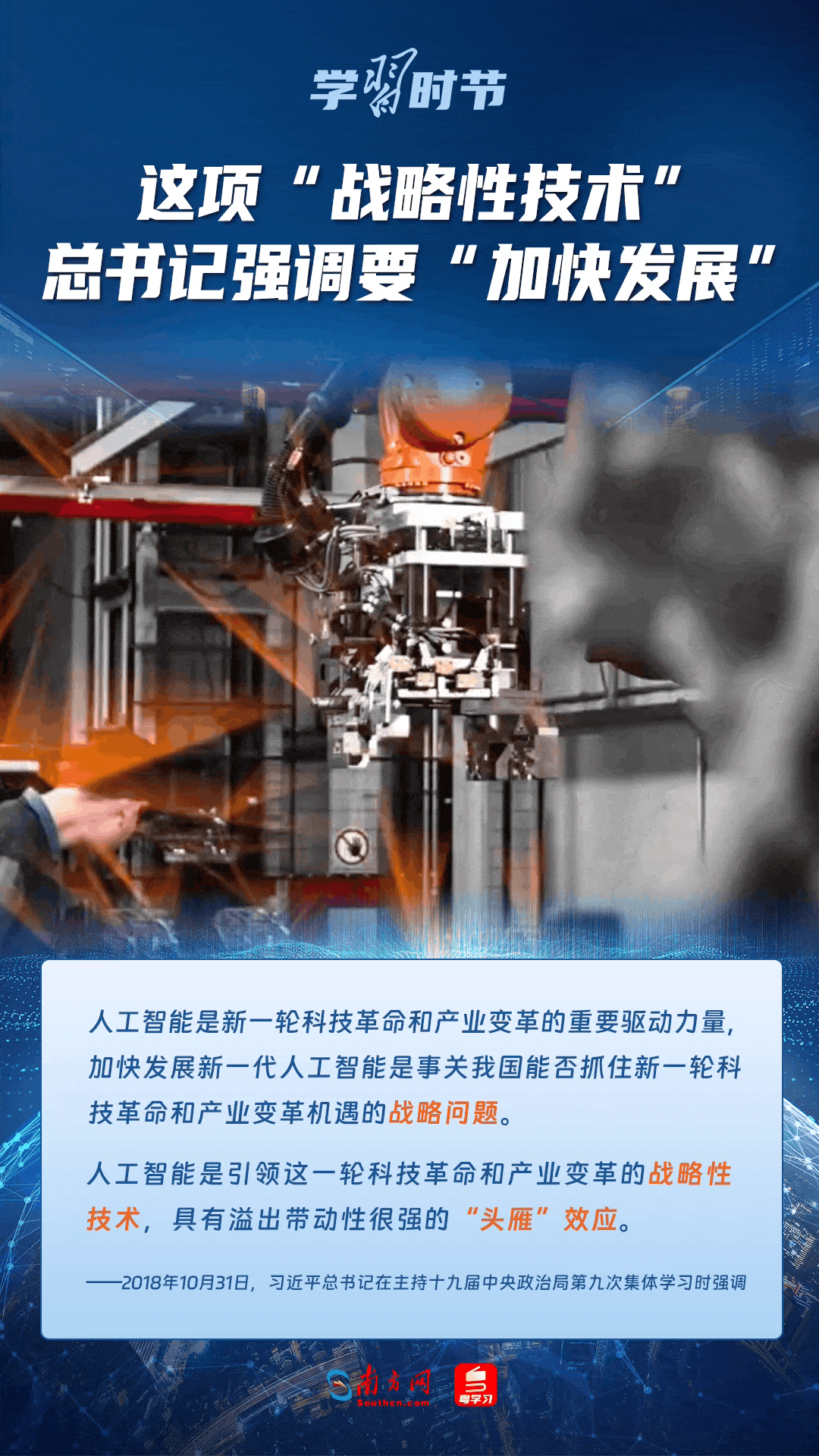 人工智能是引领科技革命和产业变革的战略性技术。党的十八大以来,习近平总书记把创新摆在国家发展全局的核心位置,高度重视人工智能发展,多次谈及这项“战略性技术”,强调要“加快发展”,为人工智能赋能千行百业指明方向。让我们一起来学习总书记关于人工智能的重要论述!
